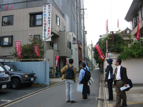 | 春日文化住宅。 見学者が多いためか 「関係者以外立入禁止」の文字。 |