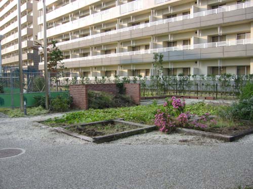 アーバニア志賀公園 志賀公園に隣接した大規模工場(神戸製鋼)跡地に都市基盤整備公団が環境共生住宅団地を整備中。 地下雨水貯留施設、災害時にはトイレとして利用可能なマンホール蓋、非常用電源として利用される太陽光発電等の防災対策で「全建賞」を受賞。 住民参加のまちづくり(花物語)として、共用地に四季折々の草花を栽培したり、屋上やバルコニーや窓に花を飾っている。当日は、花物語アドバイザーの伊藤さんにお話を伺った。 |
