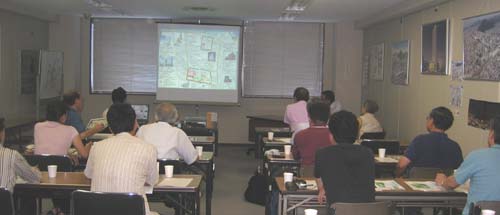 全国から視察が殺到。岐阜市をPRするよい機会ということでつくられた DVDを 見せていただいた後、再開発室長の川島さんのお話をきく。 |